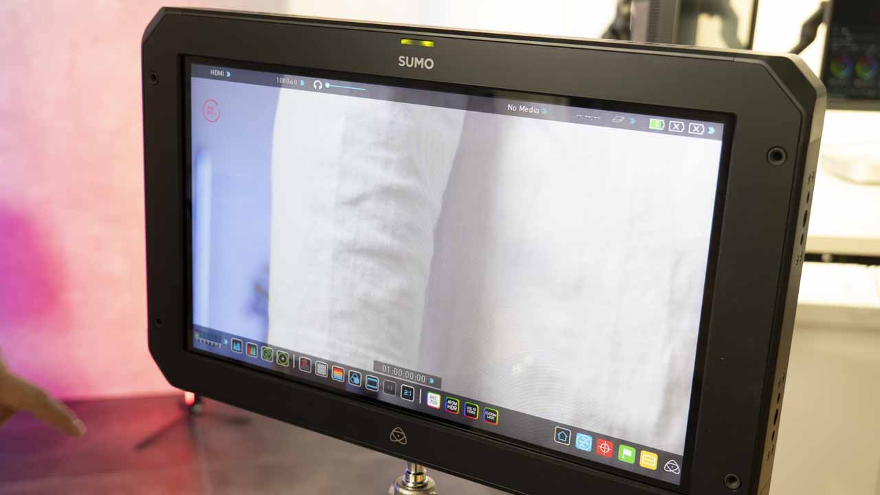 インタビュー撮影を想定したこのコーナーでは、ソニーのシネマカメラ「FX6」を使用したマルチカメラ体制が組まれ、専用アプリで複数のカメラ映像をリアルタイムで確認できる。音響面でも、新製品のショットガンマイク「ECM-778」や定番のワイヤレスマイク「UWP-D21」などが常設され、音質の違いを実際に聴き比べることができる。