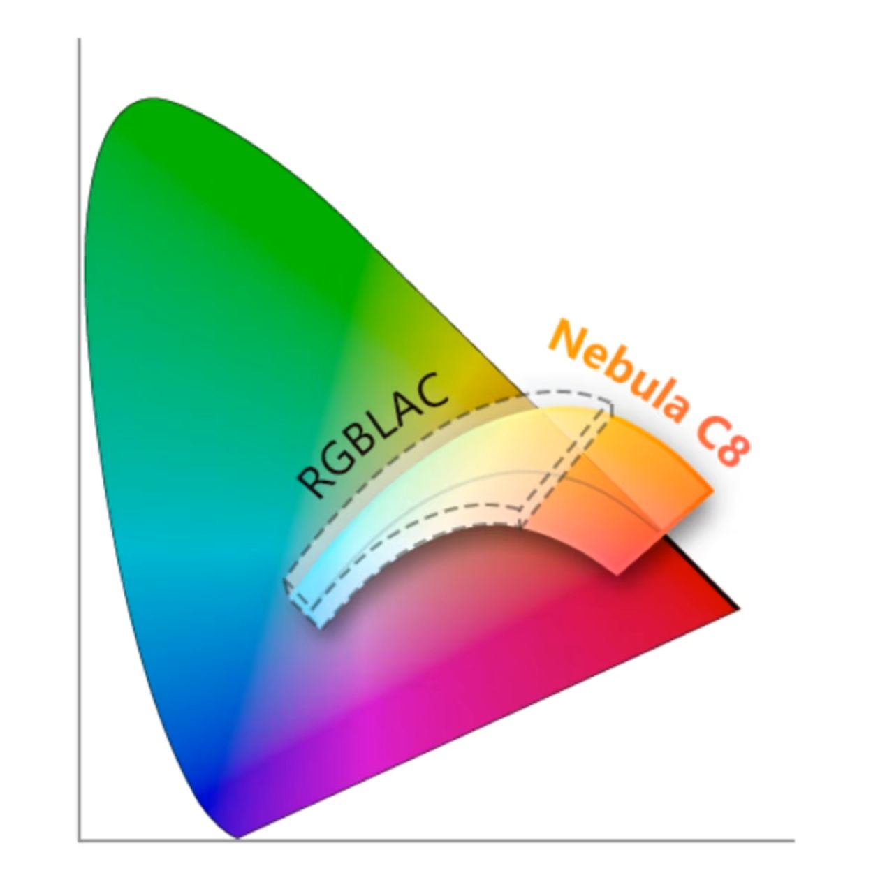 Nebula C8エンジンは、定評のあるNANLUX RGBLAC 6色エンジンをベースに、従来のカラーエンジンに見られるスペクトルの空白を埋めるディープレッドとインディゴカラーを追加した。Nebula C8エンジンは、dR(ディープレッド)、R(レッド)、A(アンバー)、L(ライム)、G(グリーン)、C(シアン)、B(ブルー)、I(インディゴ)のカラーで構成されている。