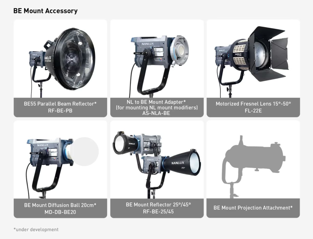 - BE、Bowens、NLマウント対応アクセサリーエコシステム互換