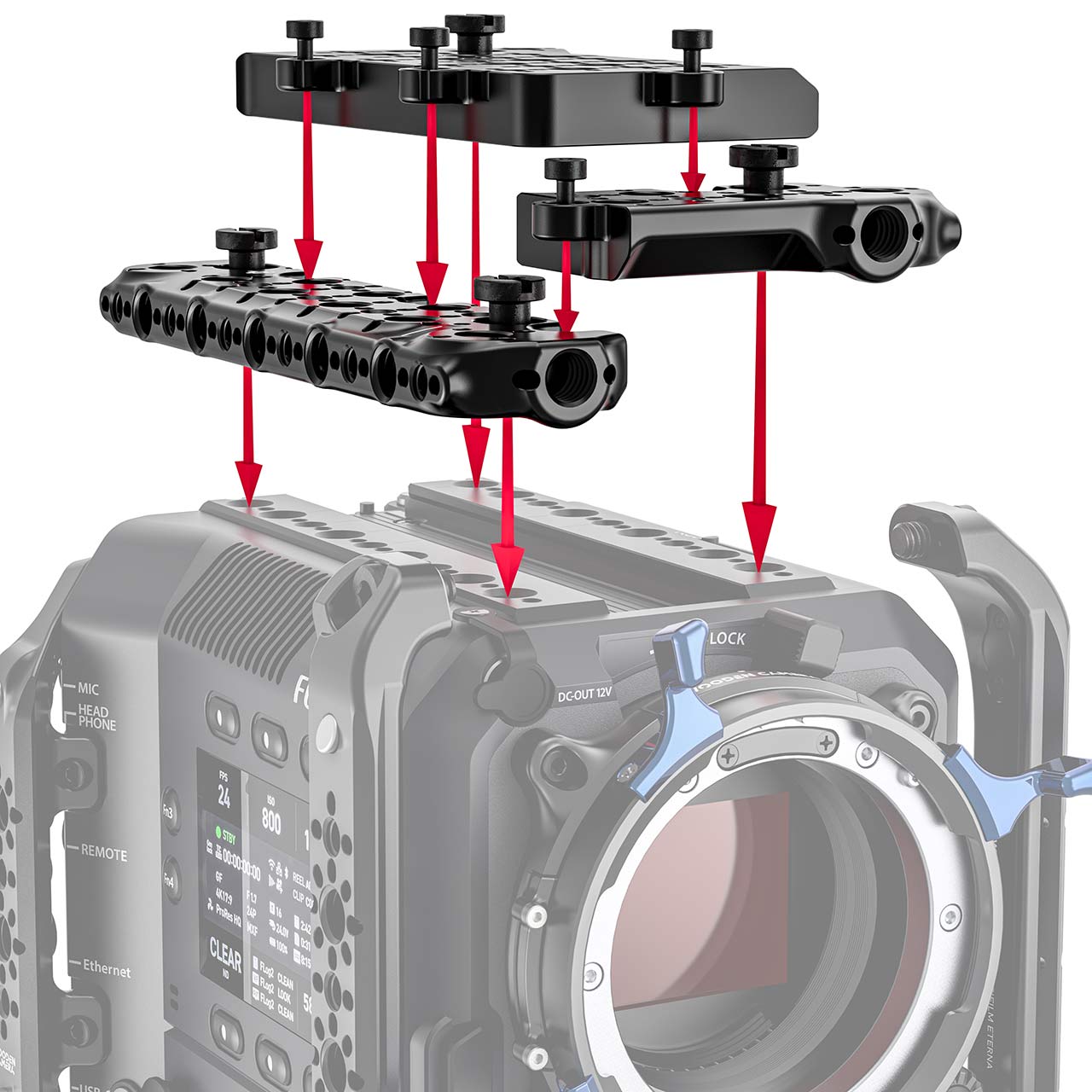 マウントソリューションも充実している。カメラ上部に取り付けるモジュラートッププレートは3つのパーツから構成されており、撮影のニーズに応じて様々な組み合わせが可能である。このプレートは、カメラ純正のハンドルと併用できるように設計されている。このほか、カメラの側面や後部に取り付けるためのサイドNATOレールやリアNATOレールも用意されており、モニターやマイクといった機材を自由な位置に配置できる。