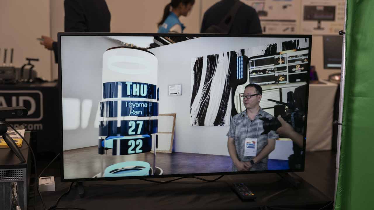 「Qimera」は、Unreal Engineの高品質なCGと、グリーンバックで撮影した実写映像をリアルタイムで合成するリアルタイムバーチャルプロダクション合成ツールである。ブースでは、小スペースのグリーンバックと照明というシンプルなセットアップでありながら、カメラを動かすとそれに追従して広大なCG空間が広がり、没入感のある映像が一瞬で生成される様子が披露された。