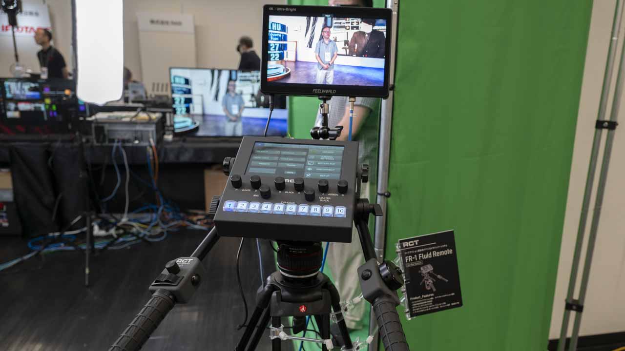 ブースでは、PTZカメラの操作性を向上させるRCT(Real-time Camera Tracking)社のコントローラー「FR-2 Fluid Remote」も展示されていた。従来のジョイスティック式とは異なり、カメラマンが普段の撮影と同じ感覚でカメラワークを行えるため、PTZカメラの操作を格段に容易にする。