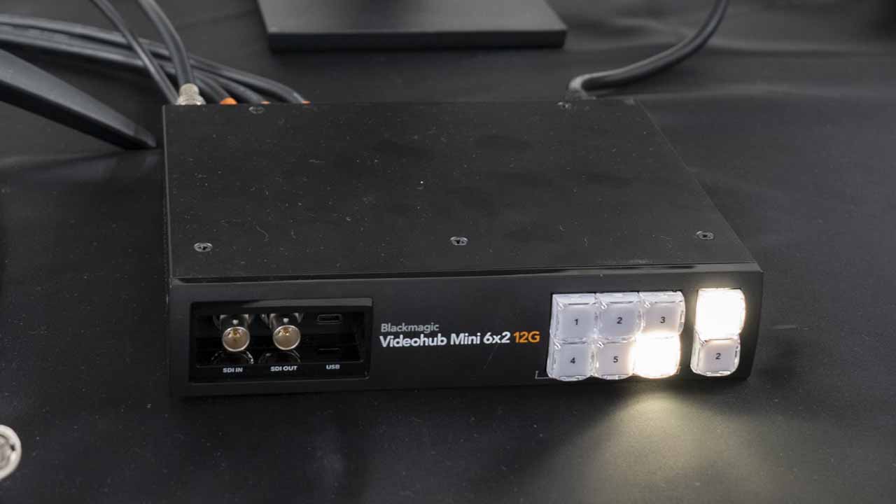 また、小型のラックマウント12G-SDIルーター「Blackmagic Videohub Mini 6×2 12G」も展示された。これは既存のVideohubシリーズに新たに追加されたモデルで、フロントパネルに「エマージェンシー入力」と名付けられたSDI入力端子を備えている。通常は背面の端子に入力された映像が使用されるが、緊急時にはフロントパネルのコネクターに接続した映像が優先的に出力される仕組みとなっている。これにより、突発的な事態にも迅速な対応が可能となる。