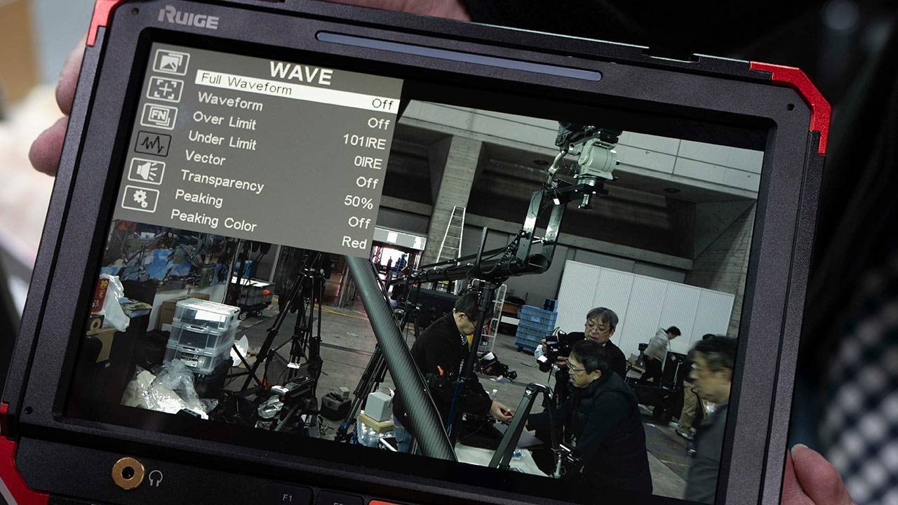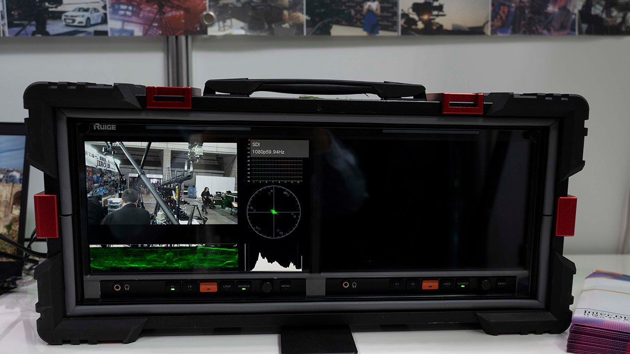 RUIGEからは、SDIとHDMIに対応した10インチ高輝度モニターが展示された。本製品は計測器メーカーであるリーダー電子の技術を導入しており、高精度な波形表示が可能となっている点が特徴だ。