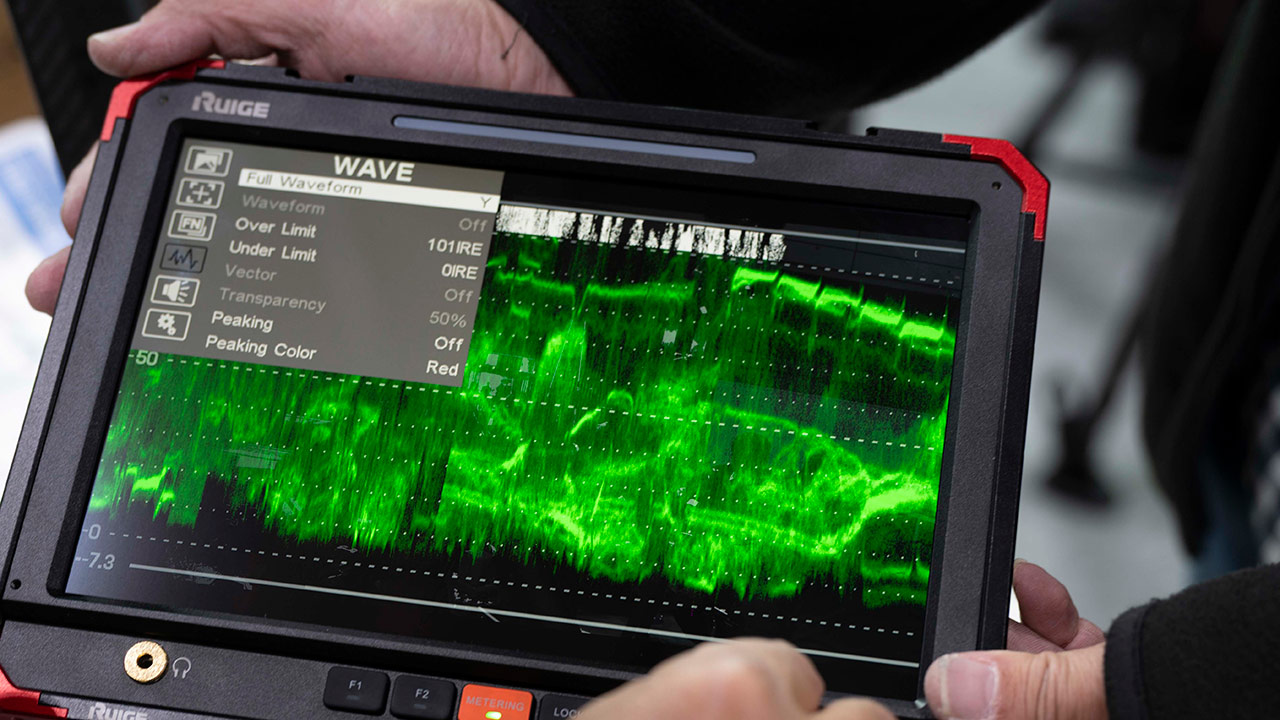 全画面での波形表示に加え、映像と波形を同時に確認できる2連モデルもラインナップされている。モニターとしての視認性に加え、波形モニターとしての精度を兼ね備えた製品として、現場での活用が提案されていた。