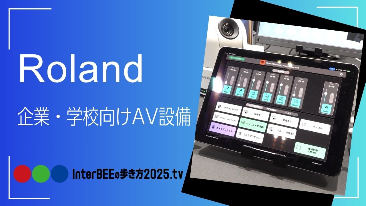 ローランドのブースでは、3つの主要テーマを掲げて展示が行われている。その一つとして、企業のセミナールームや配信スタジオ、学校設備などを想定した「企業・学校向けAV設備」のソリューションが紹介された。
