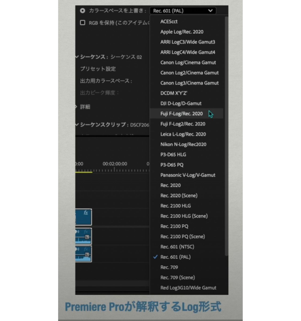 また事前知識として、Log形式について、通常は「〇〇Log」と呼ばれが、厳密に言うとこの呼び方では情報が足らず、あくまでもこの表記は、輝度記録トーンの名称でしかなく、色域の情報が欠けてる状態であることが解説された。