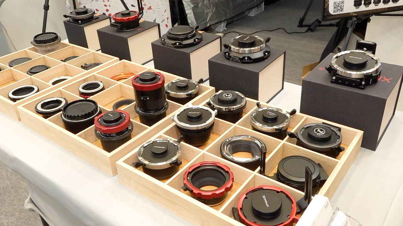 担当者によれば、昨年の来場者からの要望に応える形でラインナップを急拡大し、現在は約130種類にも及ぶという。そのバリエーションも極めて実用的かつマニアックだ。例えば、放送用のB4マウントレンズをPLマウントシネマカメラに装着するためのアダプターなど、一般のカメラ店ではまずお目にかかれないニッチな製品まで網羅されていた。「ここに来れば、大体のアダプターが見つかる」という言葉通り、手持ちのレンズ資産を最新のシネマカメラで活かしたいと考えるユーザーにとって、このエリアはまさに宝の山と言える展示であった。