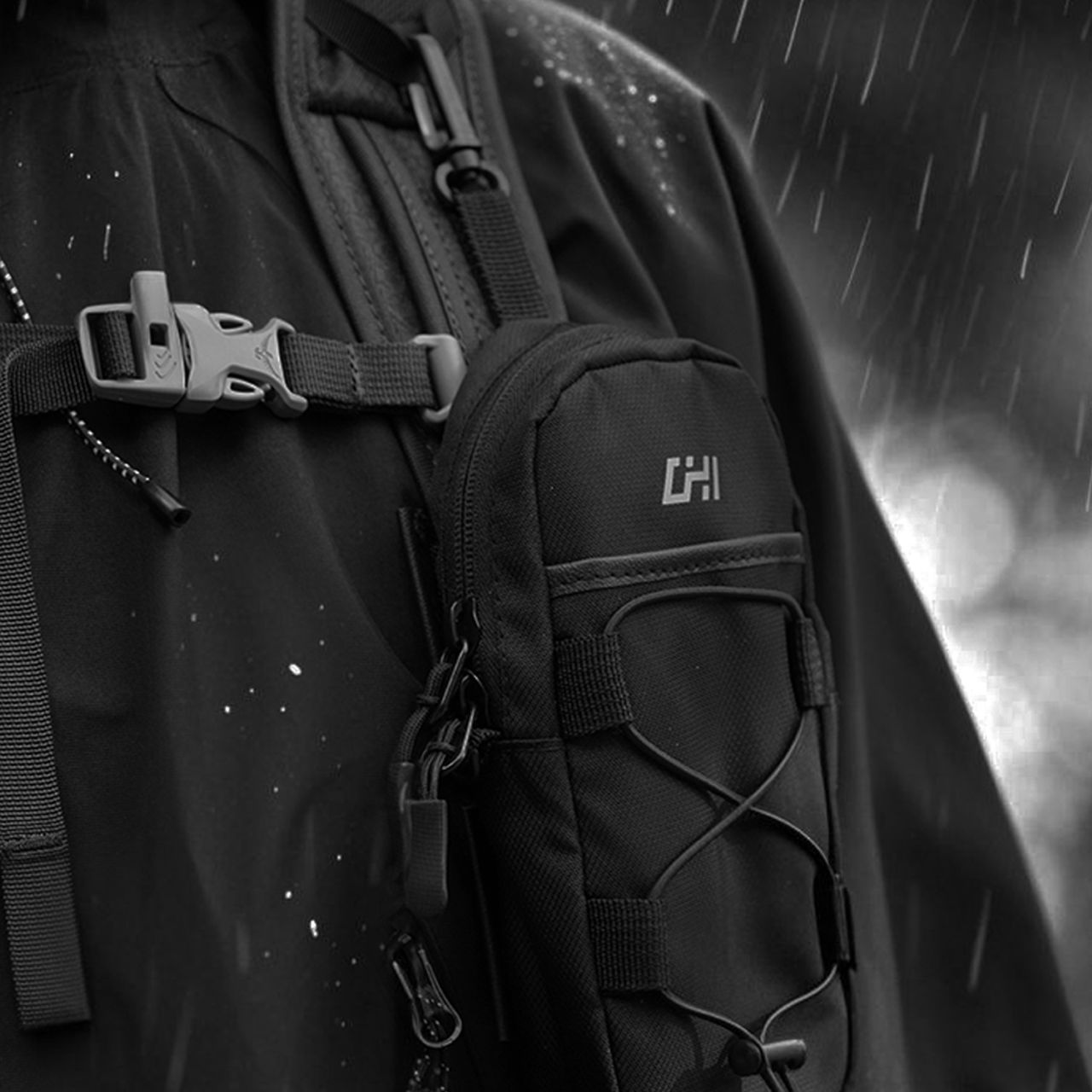 CHI アクセサリーポーチ Bag+は、バックパックのショルダー部に取り付け、様々なアクセサリー類を収納するのに役立つという。付属ストラップで単体ポーチとしても使用可能。耐摩耗性と耐水性に優れた生地で作られており、屋外環境に対応する。