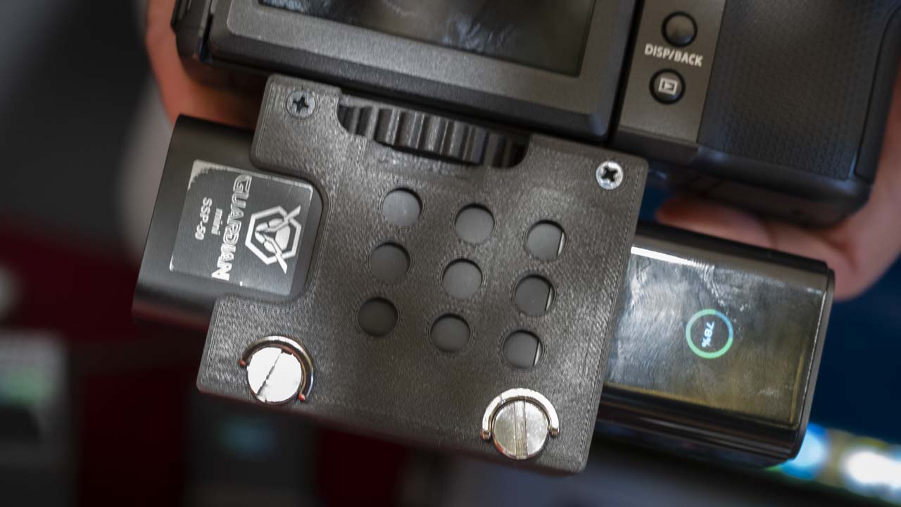 実機に触れてみると、NATOレールを介したグリップの着脱は非常にスムーズで、一人での操作を意識した使い勝手の良さが伝わってくる。これは単なるケージの機能というだけでなく、ETERNAを「少人数でも扱えるカメラ」として提示したいという、展示側の意向が反映されているように感じた。