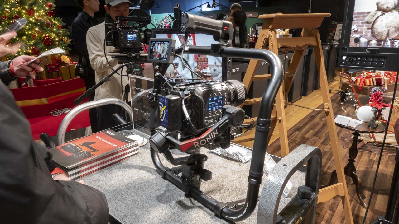 ジンバルを用いた運用提案も、GFX ETERNAを中心とした展示内容の中で特に象徴的なパートだった。これまで中判センサー搭載のシネマカメラは、大型リグとハイエンドスタビライザーを前提とするのが常識であった。