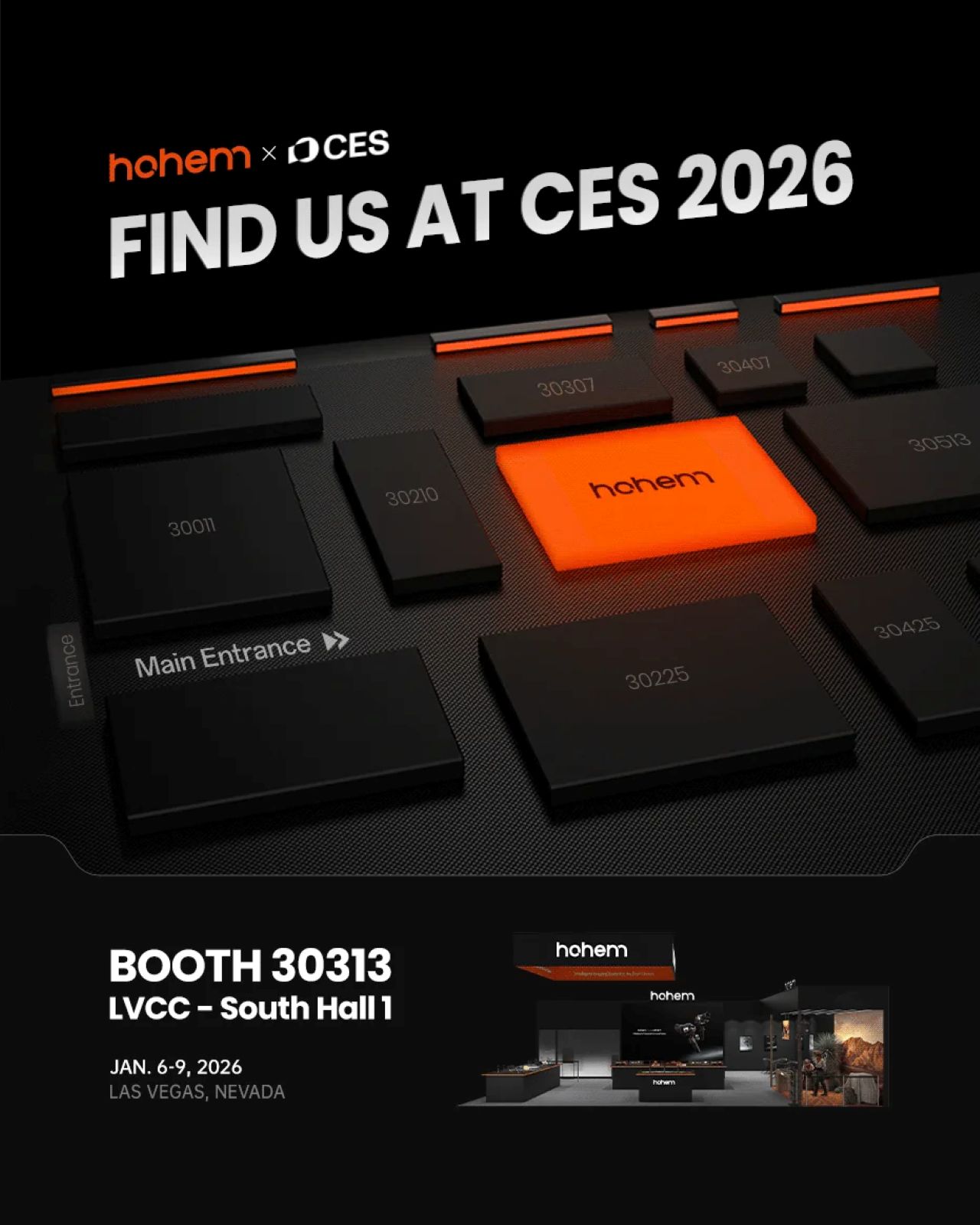 CES会場では、LVCC南ホール1のHohemブース(#30313)にてMT3シリーズスタビライザー、SSD-01、およびHohemの最新製品が展示されている。