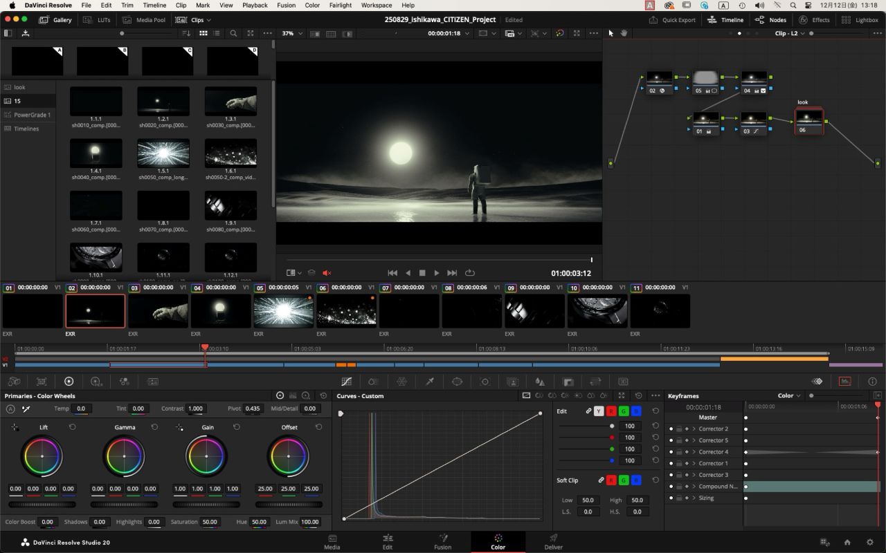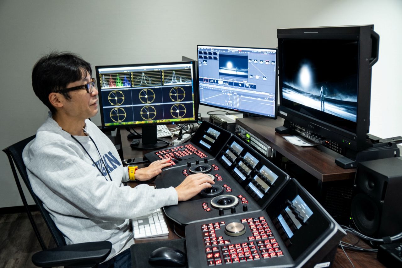 DaVinci Resolve 20は最新のACES 2.0にも対応しているので、安田と私で検証を行い、ACES 1.2で制作したCG素材をACES 2.0環境でグレーディングしても色の破綻が起きないことを確認したうえでグレーディングに挑みました。全編CGだったのでできるだけリアルに仕上げて欲しい、さらにフィルムルックも加えたいとリクエストがありました。