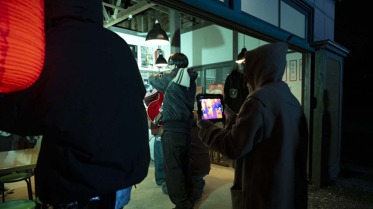 撮影の舞台となったのは、山間に位置する広大なスタジオだ。街灯もまばらな道を抜け、ようやく辿り着いたその場所には、すでに壮大な美術セットが組まれ、多くのスタッフが慌ただしく行き交っていた。照明、撮影、美術――。各分野の専門スタッフが持ち場につき、撮影開始に向けた準備が着々と進められていく。そこには、河合さんが学生時代に経験してきた現場とは一線を画す、プロフェッショナルな熱気が満ちていた。