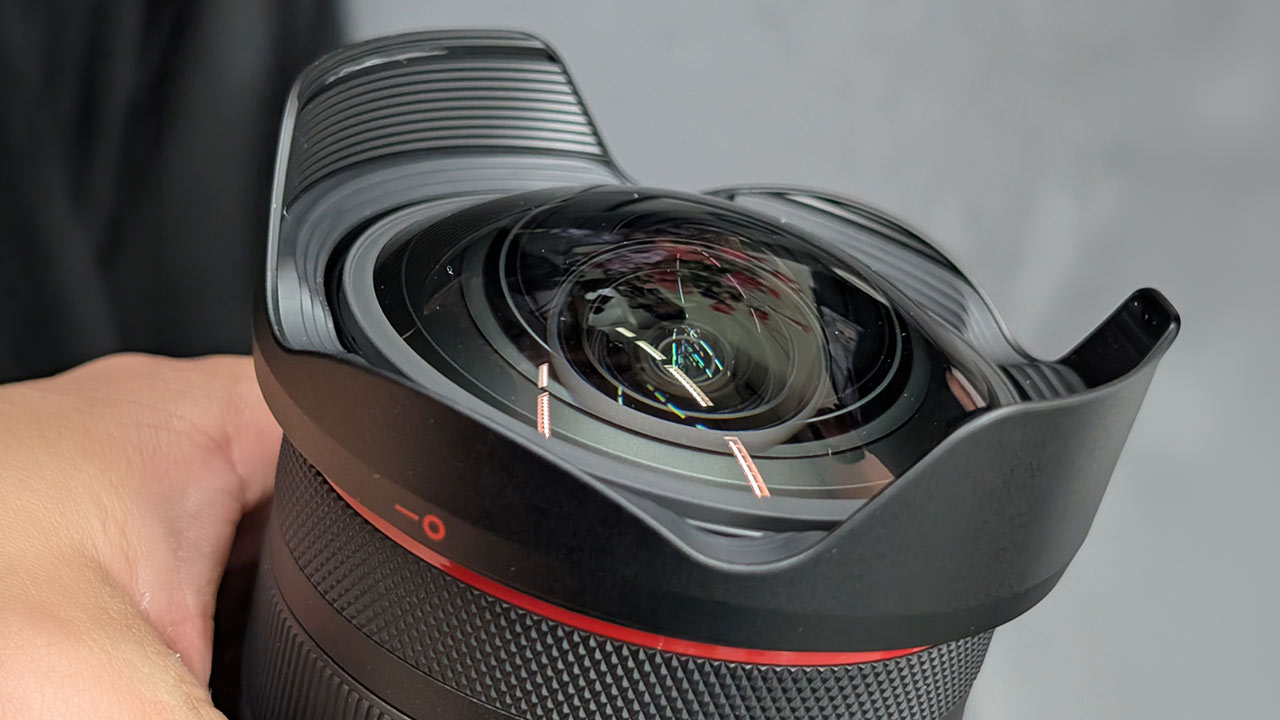会場でひときわ注目を集めていたのが、キヤノンが世界初とする、フルサイズ対応インナーズーム魚眼レンズ「RF7-14mm F2.8-3.5 L FISHEYE STM」だ。