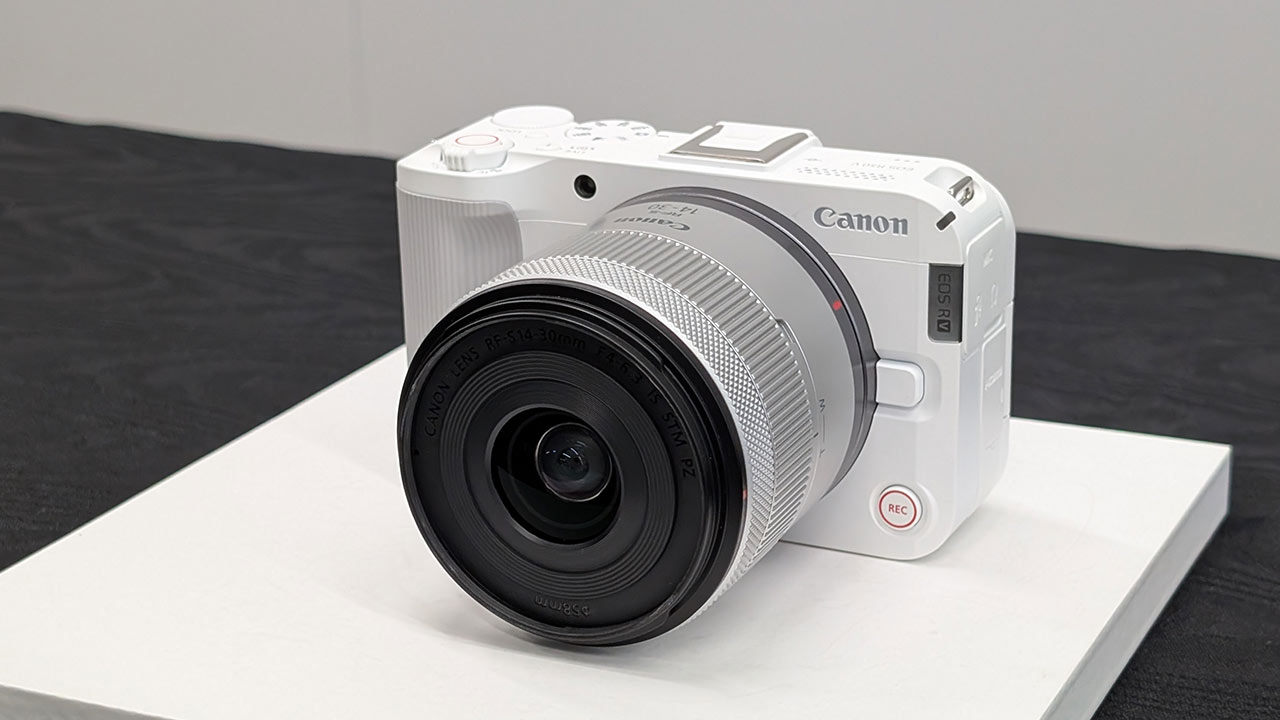 レンズ群とは別の軸で、市場に対する提案として分かりやすかったのが、ミラーレスカメラ「EOS R50」の新色ホワイトモデルである。スペック自体は既存モデルと同一だが、実機は「持ち出す動機」をデザインで作りにいく意図が明確だった。