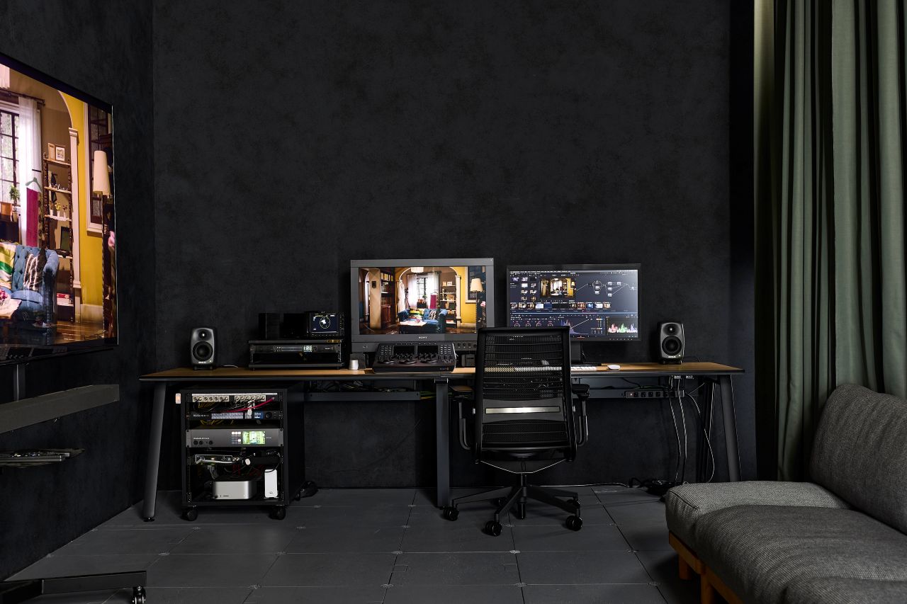 マスターモニター「BVM-HX3110」を備え、厳密な色評価や映像仕上げのカラーグレーディング環境を構築する。また、大画面TVとしての表示品位の確認検証ができるようにクライアントディスプレイとして「BRAVIA 9」を設置。一般的に、ポストプロダクションスタジオと撮影スタジオは別の場所にあるが、DMPC Japanではこれらを同じ施設内に備えているため、撮影から仕上げまでを効率的にテストすることができる。
