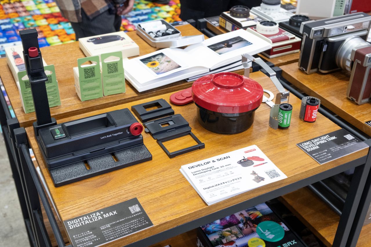 まずはアナログ回帰、銀塩回帰が増えたことだろう。カメラに関して言えば、フィルムカメラやレンズ付きカメラを展示するメーカーが以前に増して目に付くようになった。なかでも極め付けはロモグラフィーの「MC-A」。往年のフィルムコンパクトカメラを彷彿とさせるボディに32mm F2.8の単焦点レンズを搭載する。フィルムコンパクトカメラは欲しいけど、中古じゃなくて新品がいいと思うユーザーや、本格的にフィルム写真を楽しみたいユーザーに訴求できるものだろう。同社はそのほかにもチープなイメージのフィルムコンパクトカメラも展示するほか、フィルム現像タンクやスマートフォンを使ってフィルムをスキャンするスタンドなども見ることができる。フィルムで撮影を楽しむ(楽しみたい)写真愛好家にはたまらないブースとなっている。