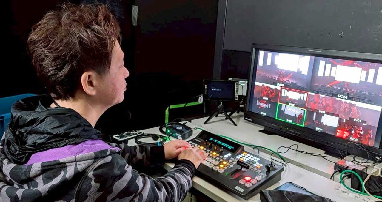 なお、インカムに関しては、Hollyland製のワイヤレスインターカムシステム「Solidcom H1」を導入している。H1単体では10セットまでの制限があるため、さらに大規模な運用を想定してクリアカムとのジョイントを図った。これにより12名を超えるスタッフへの配信が可能となり、計十数名による円滑なコミュニケーション体制を構築した。異なるシステムを柔軟に統合することで、現場の要求に応える運用の幅を広げている。