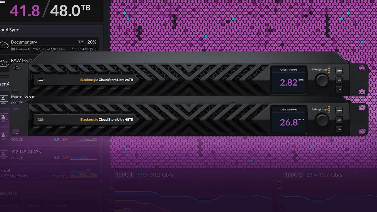 Blackmagic Designは、新製品「Blackmagic Cloud Store Ultra」を発表した。本製品は最大48TBの容量に対応した高性能フラッシュストレージであり、2つの独立した100Gイーサネット接続を搭載している。これにより、互いのワークフローに影響することなく、収録と編集を同時に実行することが可能となった。