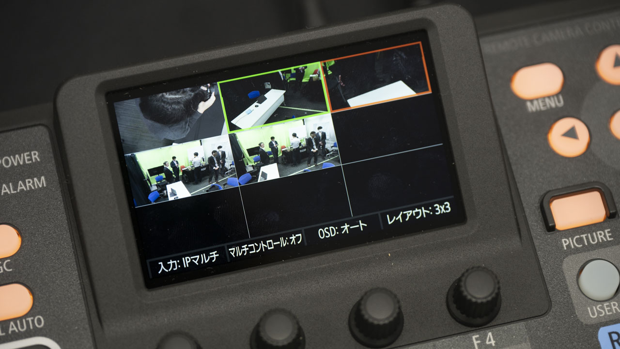 さらに、オートフォーカスやタッチフォーカス、自動追尾、クロップ設定などの各種機能もコントローラー上から操作できる。IP映像と連携した制御により、撮影中の細かな調整を一元的に行える構成となる。