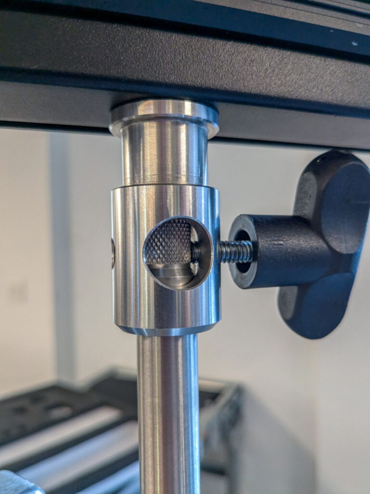 進化し続ける業界のニーズに応えるため、今回の改良では、スタンドのゴーボアームの一端に、1/4インチ-20ネジ切り加工が施されたステンレス製の「ベビーピン」を追加した。このローレット加工されたアンダーカットとショルダー部により、グリップ力と安定性が向上し、負荷がかかった際の意図しない回転や滑りを防ぐ。この改良により、取り付け作業が効率化され安定性が向上し、幅広いアクセサリーやフィクスチャーをゴーボアームの先端に直接、確実に取り付けることが可能になる。この安全上の利点は、逆さ向きに取り付ける際、スタッフや高価な機材を保護する上で特に重要となるという。