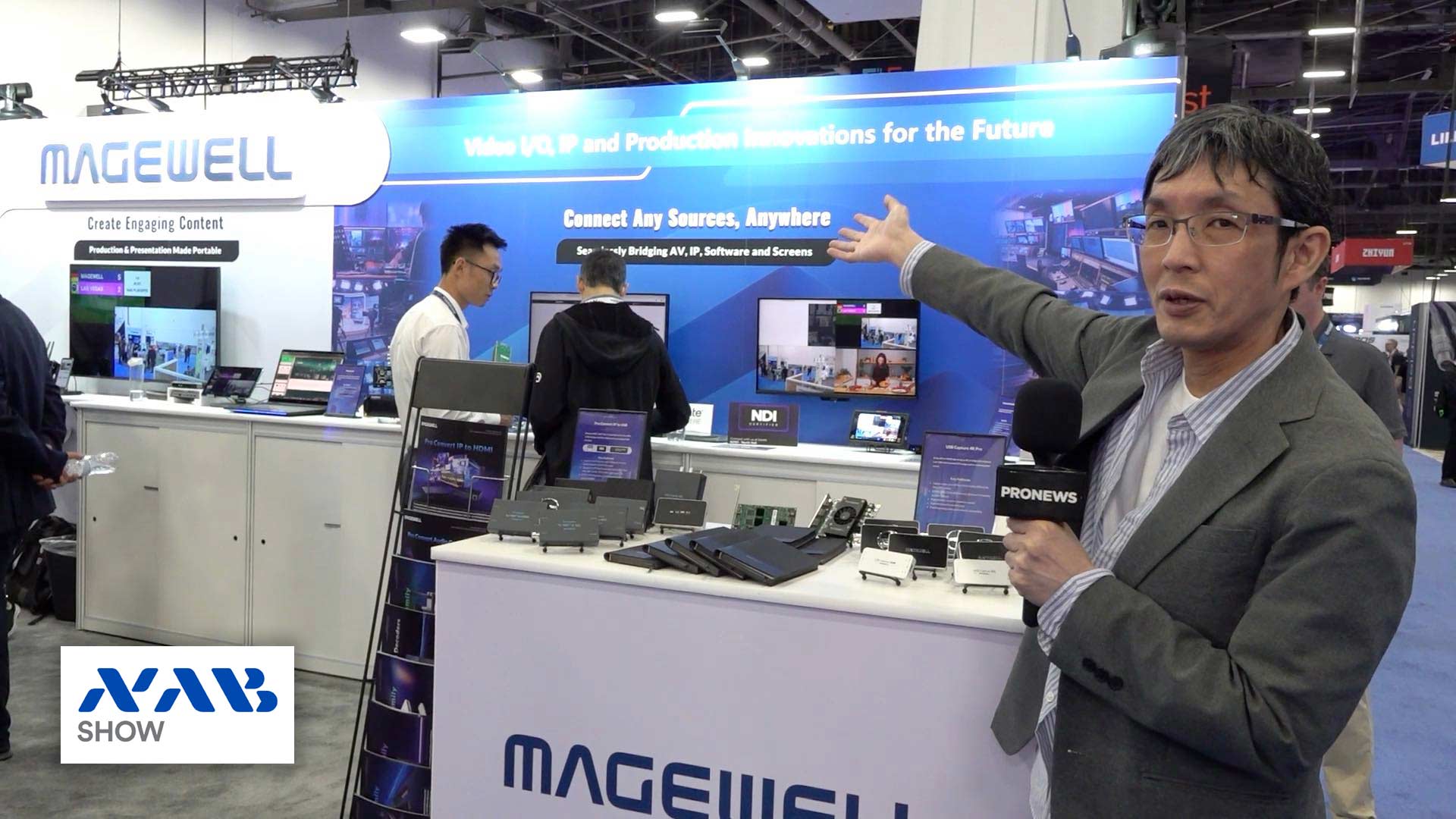 Magewellのブースに足を踏み入れると、まず目に飛び込んでくるのは「どこからでも、どこにでも繋がる」という明快なコンセプトを掲げた展示だ。会場にはボックス型のコンバーターやキャプチャーデバイスが整然と並び、映像制作の現場がIP化へと加速する勢いを肌で感じる。