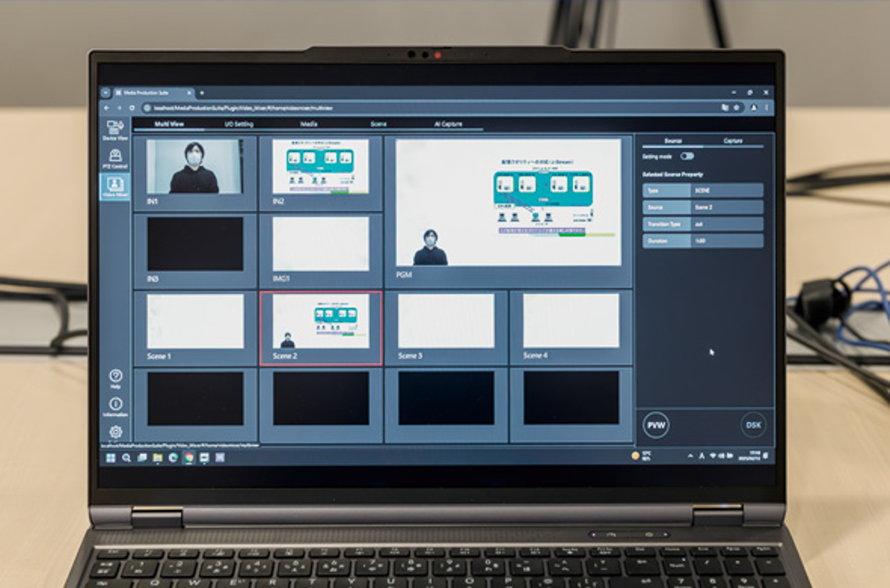 製薬会社が主催するWeb講演会でのライブ配信では、従来のハードウェアスイッチャー構成をVideo Mixer中心のソフトウェア構成に置き換えた。初めての現場導入だったが、事前のリハーサルとパナソニックの技術サポートにより、トラブルなく本番運用を終えたという。