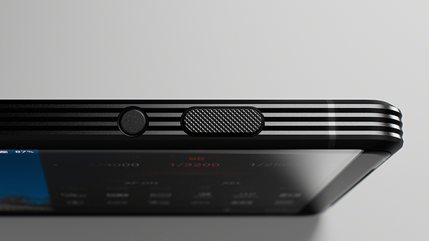本体側面に搭載しているカメラ撮影で重要なシャッターボタンにもこだわり、RX100シリーズで使用されているスイッチ部品を用いることで、カメラ専用機のような使い心地を実現。半押しでの正確なAF操作を可能にする深いストロークや、安定してシャッターを押せる広いボタン面積を確保することで、本格撮影を体感可能。画面消灯時でもシャッターボタンを長押ししてPhotography Proを素早く起動することができ、専用機のようにすぐに撮影を開始することもできる。
