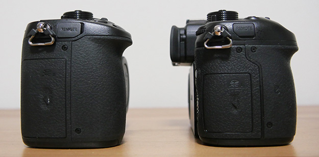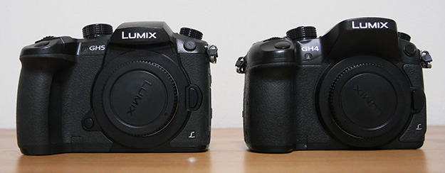 横から比べるとGH5の方がややスリムに感じる!