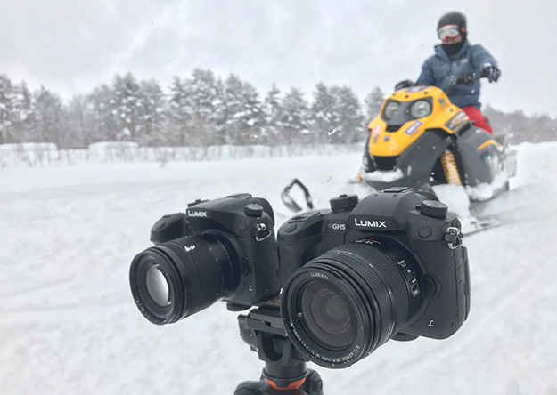 GH5のさらなる進化として、GH4からの「防塵・防滴設計」に加えてマイナス10度までの「耐低音設計」で、より過酷な環境での撮影が可能になった。ということで、今回はスノーモービルアクティビティの撮影の際に持ち出してテスト撮影を行った。