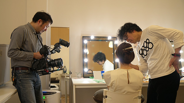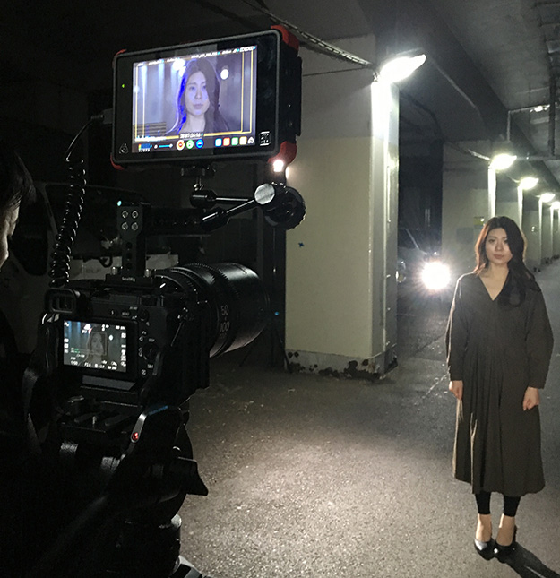 化粧品のPVは都内のハウススタジオでモデル(大橋夏菜さん)がクレイパックの使用感をインタビューで話した後、クレイパックの使い方を紹介するというトータル3分の映像。ここではメインのパートをFS7で、インタビューパートをα7S II2台で撮影した。
