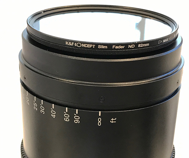 屋外などの明るい場所ではNDフィルターが必須となる。内蔵NDがないα6500での使用は、82mm径の可変NDフィルターを装着して使用。正直画質が劣化してしまうのでそこは残念なところだ。