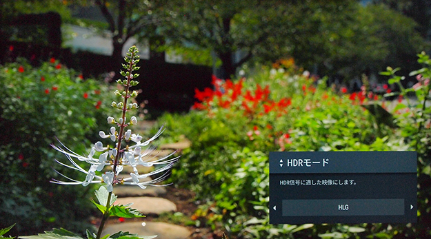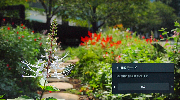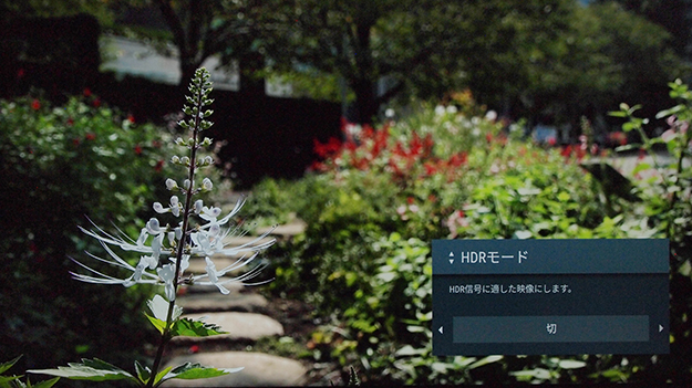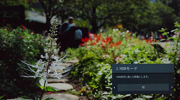 これに対して「HLG」モードでは、受像器の最大輝度に従った相対値で描画されるため、受像器がそもそも持つ最大輝度に応じて描画は変わることになる。BRAVIAではHDR10モードほどは明るくはないが「切」と比べるとかなり明るい。このようにまず最大輝度を上げることでダイナミックレンジの嵩上げを行い、その輝度を上手に利用して明部階調の緻密化を行う。これによって映像のダイナミック感の底上げをするというのがHDRの正体だ。
