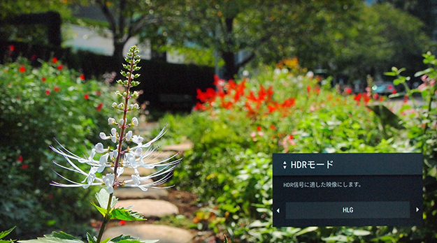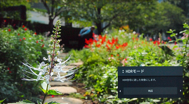 実は今回のテスト視聴で実感させられたのは、この輝度のハイダイナミックレンジだけではない。つくづく美しいと思わされたのは4K HDRの豊かな色域である。このHLG記録という方式は、4K色域のBT.2020とセットとなっているのがポイントで、HDの色域であるITU-709よりかなりの広帯域を誇る。具体的には緑方向がかなり広くなり、また赤方向にも色域が広げられている。このため木々などの緑や花々の赤などの色彩が非常に美しく、豊かな色に溢れている。「ITU-709」(HDでのガンマ・色域)などと比べてしまうと一目瞭然で、HDの色域ってこんなに色が出ていなかったんだということを実感させられる。
