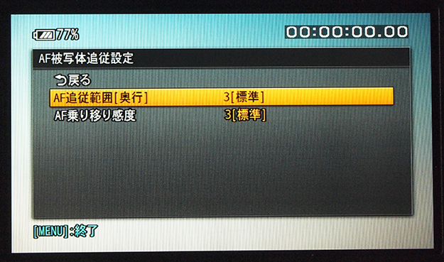 FDR-AX700 AF被写体追従設定。AF追従範囲の設定とAF乗り移り感度の設定が加わった
