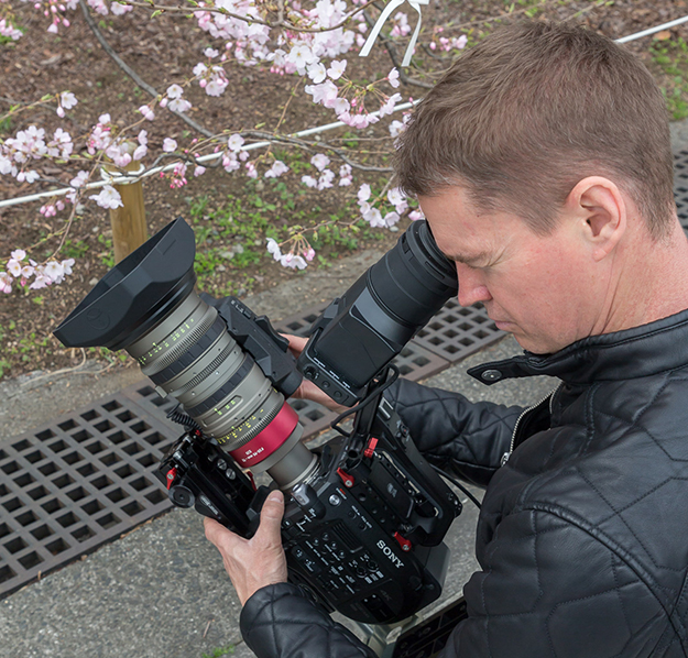 FS7 IIとEZレンズシリーズ+MSU-1の組み合わせで、合理的でコンパクトなENGスタイルは実現できるのだろうか?先述の通り、多くのSuper35mmサーボズームをデジタルシネマカメラに取り付けた際、カメラ位置がかなり後方になり、サーボグリップを握った位置が損なわれるのである。幸いなことに、EZ-1/EZ-2に純正Eマウントリングを取り付けると、レンズ部が実質的に数センチ長くなる。この延長分により、サーボグリップの位置が手持ち撮影にとって適切なポジションとなるので、実際に有益である。
