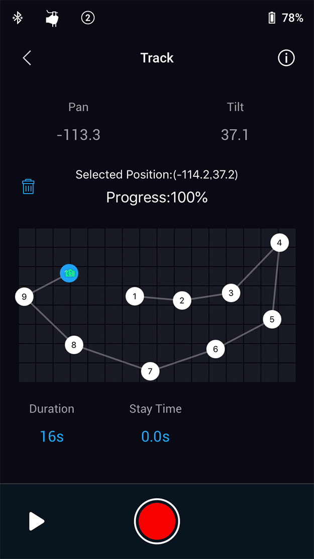 上記写真のように、最大10箇所までカメラの動きを事前に決めることができます。さらに何秒間でその動きを完了するか、というところまで決められるのであらかじめ動きが分かっているようなものを撮影する際には自動で動きをコントロールしてくれるという優れものです。