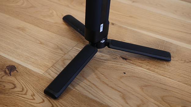 このスタンドがあることで自立するこができるのがありがたいです。Ronin-Mの場合ですと、このスタンドが非常に大きく移動が面倒であったのがこれだけでも非常にサイズ的にもありがたいです。さらにスタンドは開閉可能なので、移動中は折りたたんで持つことができます。