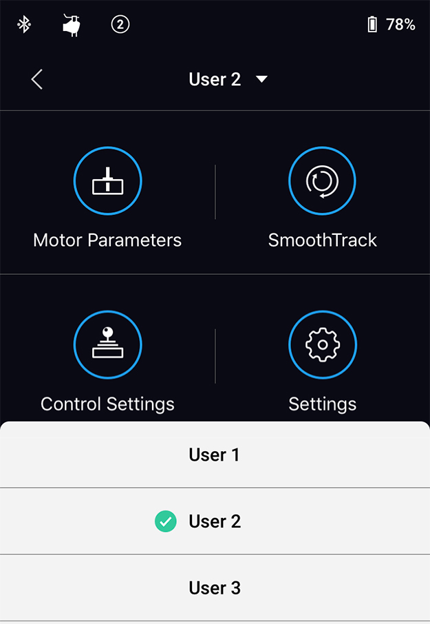 あらかじめアプリ上でUSER1-3まで事前に設定を割り振ることができます。これは例えばレンズを変えた場合や、歩く時、走る時などに応じて事前に撮りかたを決めている時に設定しておけば現場ですばやく対応できる優れものです。