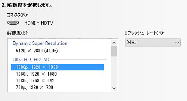 実際にPC側のリフレッシュレート設定を変更し24fpsをDaVinci Resolveのフル画面表示をしてみましたが、スムーズに表示できました(その場合、マウスポインターの動きに違和感が出ます。リフレッシュレートが低いので仕方ないです)。解像度は1920×1080での対応となりますのでご注意を!