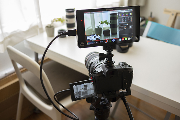 内部記録はできないがRECトリガー出力があるため、SHOGUNではEOS R側でREC操作が可能だ