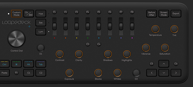 本体上部にある「P1」~「P8」にはプリセットが登録できる。初期設定ではLoupedeckが提供するプリセットが登録されているが、自分で作ったプリセットも登録可能だ(カスタマイズについては後述)。