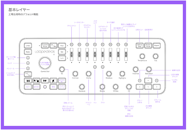 各ソフト用にLoupedeck+本体に被せる薄いカバーを用意して、そこに各ソフト毎のデフォルトの機能を表記しておくのも面白いかもしれない。