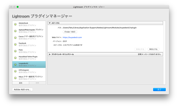 「Loupedeck2プラグイン」が「有効」になっていれば問題ない。