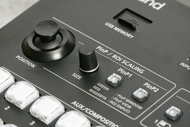 今回は4K対応のハイエンド機ということで、ポジショナーとしてジョイスティックが搭載された。PinPや後述するROIのポジションを、いちいちメニューに入らずに動かせるのは便利だ。ただ従来のセオリーからすると、ジョイスティックは右手で操作する人が多く、普通こうしたコントローラは右手側に設置されるものである。左側にあるのは、そこしか置き場所がなかったのかもしれないが、右利きの人は微調整に苦労するかもしれない。