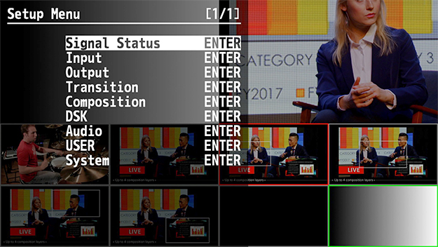 V-600UHDのCompositionは、Keyerとしての機能として、ルミナンスキーやクロマキーはあるが、エクスターナルキーがないという、独自仕様となっている。おそらくエクスターナルキーを使わなければならないような、ポストプロダクション的な合成が必要なユーザー層がターゲットではないからだろう。
