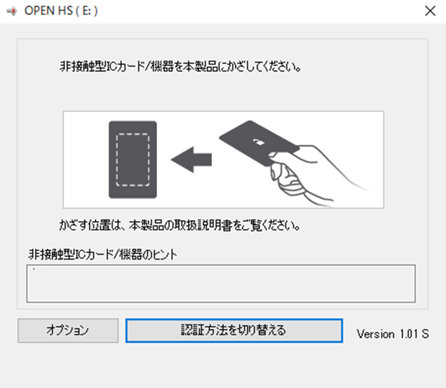 ここで実際にICカードの登録を行ってみました。初期設定で一度だけカードを登録することで次回からユーティリティーを立ち上げ、カードを本体にかざすだけでHDDの使用領域(ユーティリティーフォルダーとは別のドライブとして認識)しました。また、Windowsマシンのみ、HDDを接続すると自動的にユーティリティーが立ち上がる設定もできますので、より手軽に認証が可能となってます。