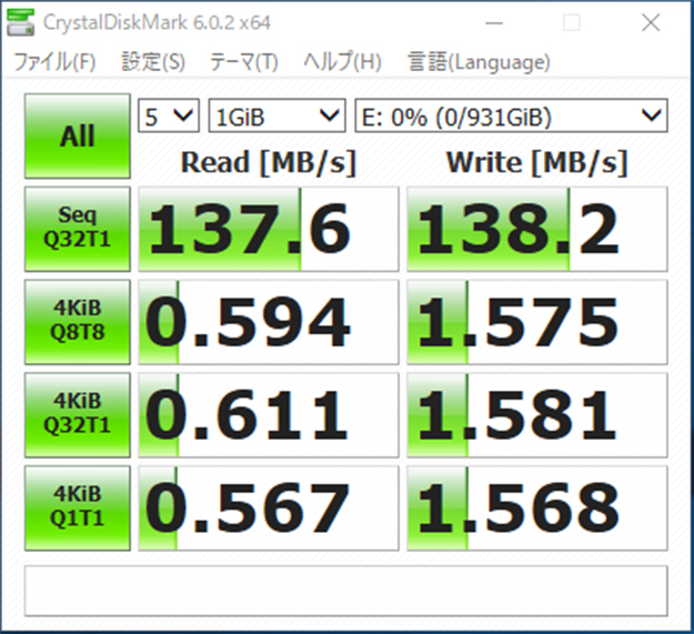 さて、内部で信号を暗号化するという便利な機能ですが、肝心の転送速度に暗号化の影響が無いのかマークベンチソフトを使い、計測してみました。