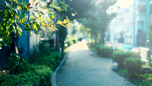 上が撮影時を反映させたもの、下がRAWの色域を再現したもの。日の当たっている歩道の奥の飛んだところはRAWのデータでも戻ってくることはなかった